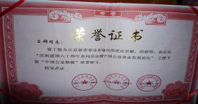 2009年中华民族经济文化发展协会、中国中小企业协会授予“中国公益楷模”荣誉称号;