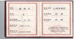 国际注册心理咨询师 高级心理保健师 婚姻家庭治疗师 得觉催眠师 企业EAP讲师 中科