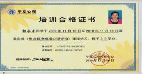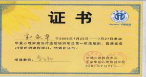 郭永平,女,2007年取得国家二级心理咨询师职业资格证,
