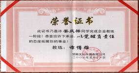 2、2007年中旬开始在黑龙江省百万家长教育工程工作委员会家庭素质教育指导中心从事组织架构设计与建设、家庭教育知识普及的讲座及培训、培训课程的设计、外联等具体工作,并担任专业讲师及讲师团副团长。