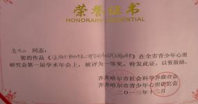 第三届中国心理学家大会全国优秀心理学工作者,2011年、2014年爸妈在线全国优秀心理学工作者。2015年黑龙江省高校心理健康教育先进个人。