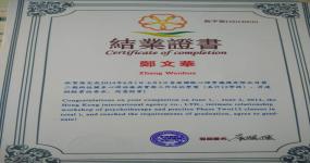 2007年,二级心理咨询师 健康管理师 2013年学习音乐疗法、沙盘、卡牌、叙事治疗 2014年学习绘画疗法、两性关系、精神分析 2015年学习责任人生、教练技术、萨提亚、家排 2016年学习经络催眠师
