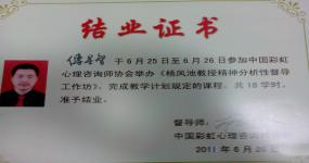 2010年8月,跟随张晓丽教授学习《企业EAP课程》,并取得高级企业EAP讲师及咨询师职业资格。