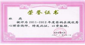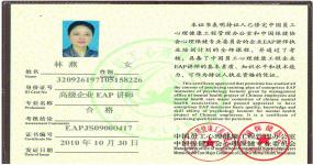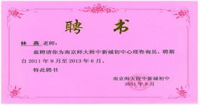 林燕     心灵导师(人社部首届)    国家二级心理咨询师      心灵海国际教育集团幸福密码训练师     家庭婚姻情感咨询师     国际注册婚姻家庭指导师    无限生机心理养生高级咨询师    企业EAP高级咨询师     爸妈在线心灵导师服务团队成员   企业EAP培训学院员工心理援助服务团队成员   心理养生咨询师培训学院心理养生咨询师服务团队成员   江苏省保健协会心理咨询协会会员。