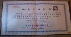 2011年参加爸妈在线总部的营销教练高级讲师班,并取得国家劳动部发的资格证书