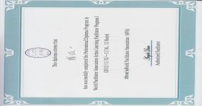 爸妈在线苏州中心副主任、北京西商国际心理医学研究院理事会理事、NLP执行师,新加坡TTT授证培训师,新加坡WBSA国际商务企划员,PMP国际项目管理师资格,DPNP新产品开发管理师资格,CAREERCOACH 职涯顾问师,Facilitator 引导师。
