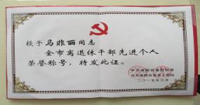 2015年3年被评为南阳市离退休干部先进个人称号。