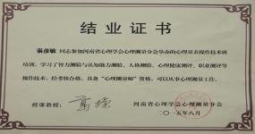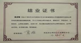 2012年取得国家二级咨询师资格;2014年10月至2015年10月,参加郑州大学葛操教授举办的心理咨询实战技能高级精英班,并培训考核合格。