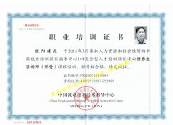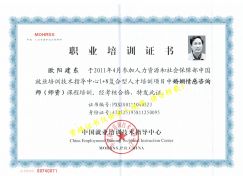 2011年中国人民大学应用心理学在职研究生课程结业;同年参加人社部多项就业资格考试,分别获得:心灵导师高级讲师、私人心理顾问高级讲师、婚姻情感咨询师高级讲师、心理养生咨询师高级讲师、营销教练高级讲师资格。