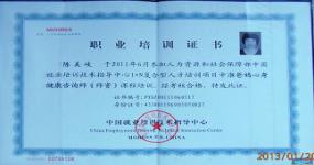 专业资质 心灵导师、学生心身健康高级讲师、准爸妈心身健康高级讲师、国家注册心理咨询师