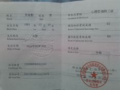 专业资质 国家三级心理咨询师
