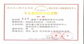 专业资质 国家二级心理咨询师 美国NGH催眠治疗师、中国保健协会心理专业委员会高级催眠治疗师、职业指导师、爸妈在线金牌讲师、重庆万州心理学会副会长,重庆心港心理咨询中心主任咨询师