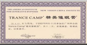 受训于国际催眠大师(美国)尼克·莱佛士NickleForce博士亲授的《A.C.H.E临床催眠治疗》课程和《NLP高级执行师》课程。