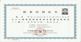 2012年1月至6月参加北京华夏思源教育机构催眠师专业技术培训,并以较好的成绩通过了潜能咨询师、催眠师的考试。