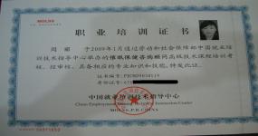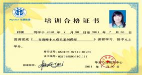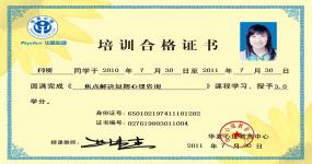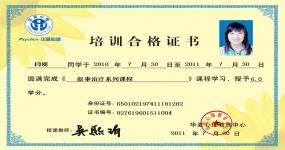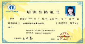获得国家二级心理咨询师证书、意象对话治疗师技术证书、国家高级催眠保健师等证书、企业管理意象对话治疗师。