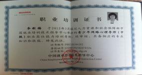 2004年12月取得国家注册心理咨询师咨格证书;2005年西南大学心理咨询与治疗专业毕业并取得研究生学历;2008年在阳光心理咨询中心实习并开始做兼职心理咨询师。2009年5月参加新NLP密码培训,同月取得意向对话心理咨询与治疗初级证书;2010年12月取得EST人才技术专业能力测评办公室,国家专业技术人才服务网人才管理办公室心理教练导师证书。多次参加危机干预的培训。
