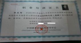 2013年12月通过参加人力资源和社会保障部就业培训技术指导中心举办的心理顾问(高级)培训考核,取得心理顾问(高级)职业培训证书。