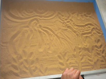 抚沙:抚沙很投入,也很放松,把沙盘抚的很平整,