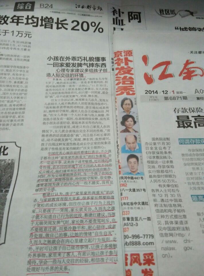 一旦回到家里,或者只有自己家里人在的情况下,女儿就会表现出完全不同的性格,“用她爸爸的话说就是很‘疯’,而且很不听长辈的话,动不动就发脾气、哭闹、摔东西。我想请问,孩子出现这种双重性格是成长中正常的现象还是孩子性格里有某些缺陷?”汪女士很担心。