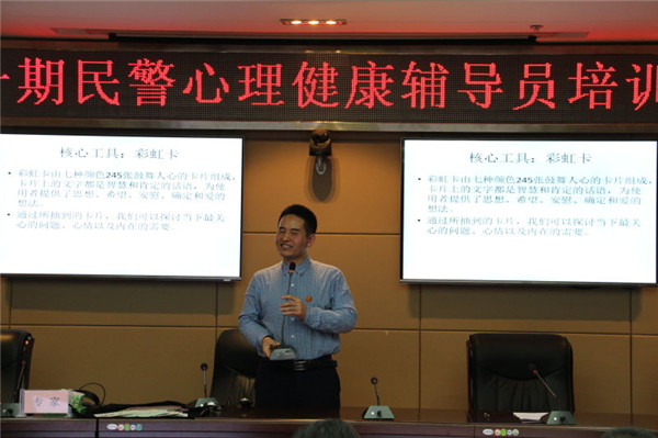 参加干警心理健康辅导员培训的多数学员是有心理咨询专业培训背景的干警和政工人员,鹿凤山老师针对参加培训干警的基本情况,从人际沟通入手,介绍了快速建立咨询关系的提问和倾听技术,以及倾听过程中的注意事项。怎么样进一步加深咨询关系?鹿老师讲解了积极关注的含义,以及在咨询中的具体应用。如何在充分理解的基础上,支持和鼓励对方?鹿凤山老师循循善诱,用积极心理学的工具彩虹卡,具体讲解了心脑成像技术中的鼓励支持技术。