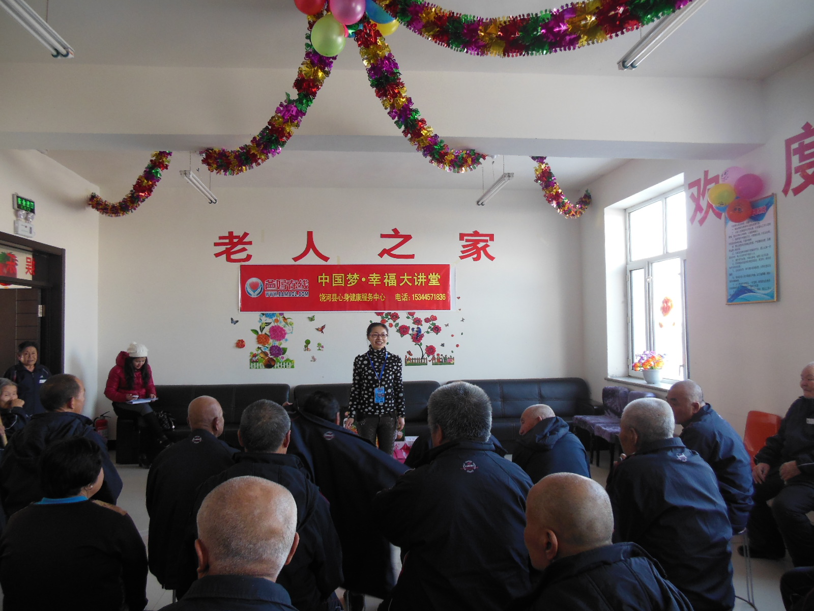 咨询中心薛雅文主任对老人进行了心理健康知识讲座,并教授了心理养生操,针对老人提出的心理问题给予解答。